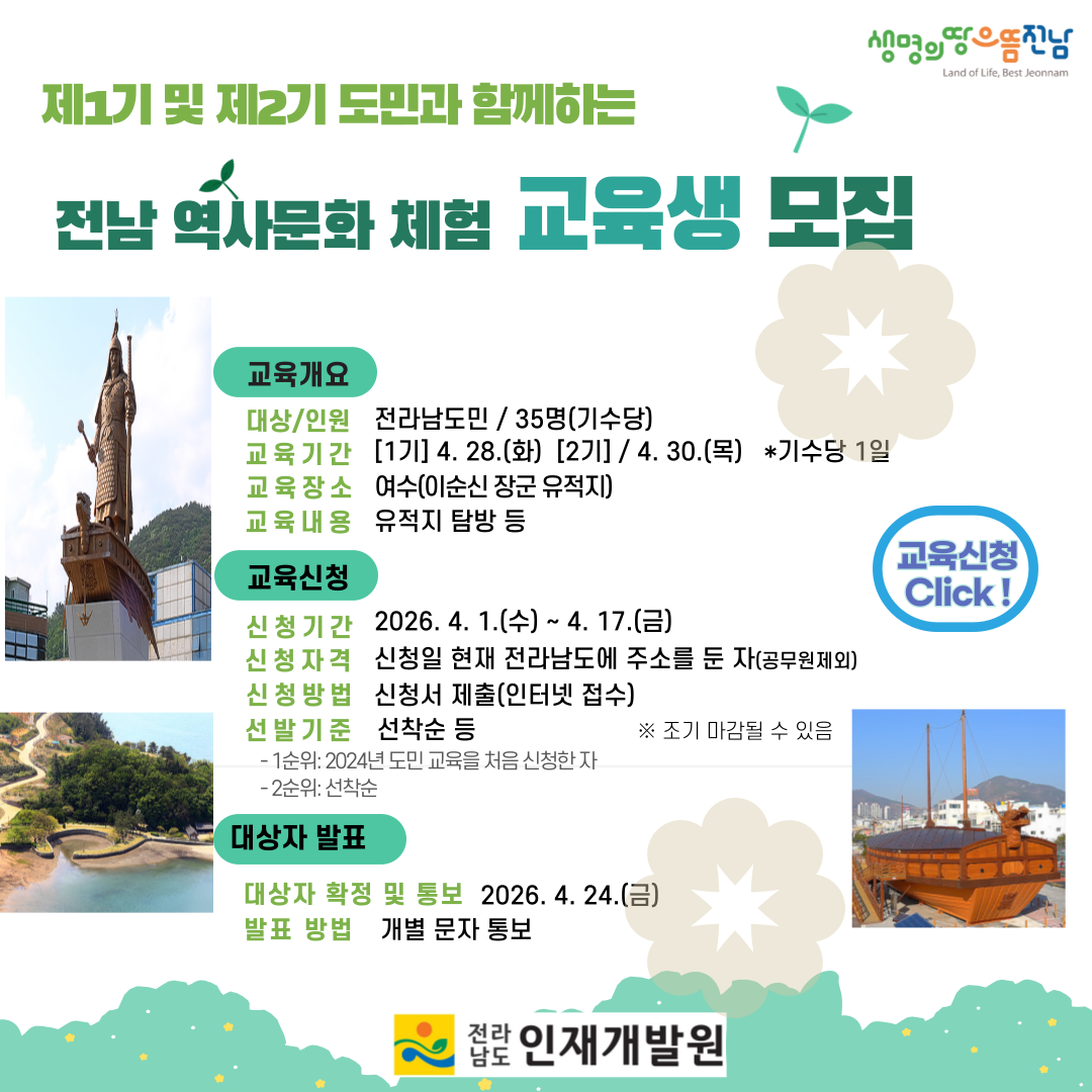 | 제목 | 제1기 및 제2기 도민역사체험과정 신청 | ||